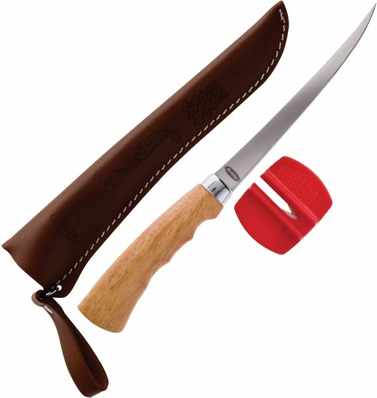 - With a six inch stainless steel blade, this is very sharp making filleting easy and precise. Included is a knife sharpener and sheaf to keep the tool safe and sharp.