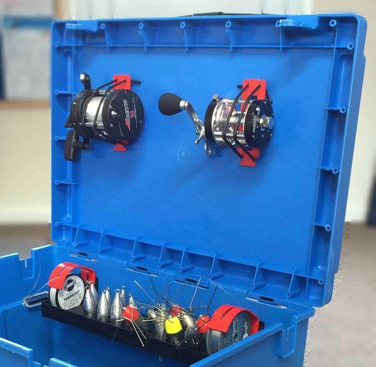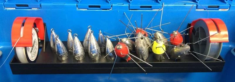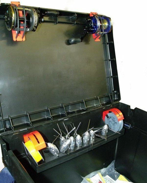 - By placing your reels on the lid out of harm’s way, your leader line is neatly stored where you can find it and all your leads are in the lead tray not tangled around your other tackle.