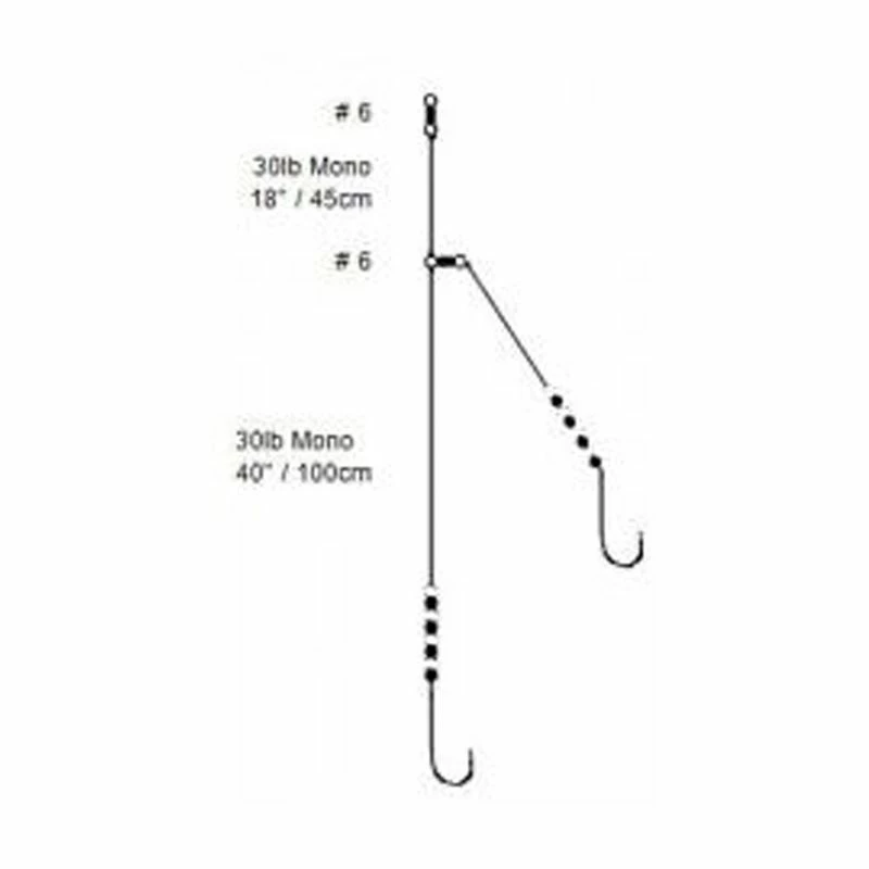 Size 1/0 hook is used for this simple two hook large beaded trace that doubles the chance of a fish! A long shank Aberdeen hook makes this ideal for a lot of bait choices, such as ragworm or mussels.