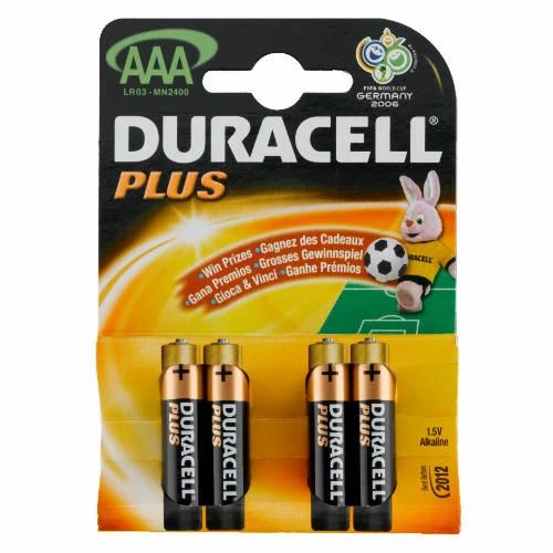 This pack contains 4 x AAA Duracell Plus alkaline batteries.