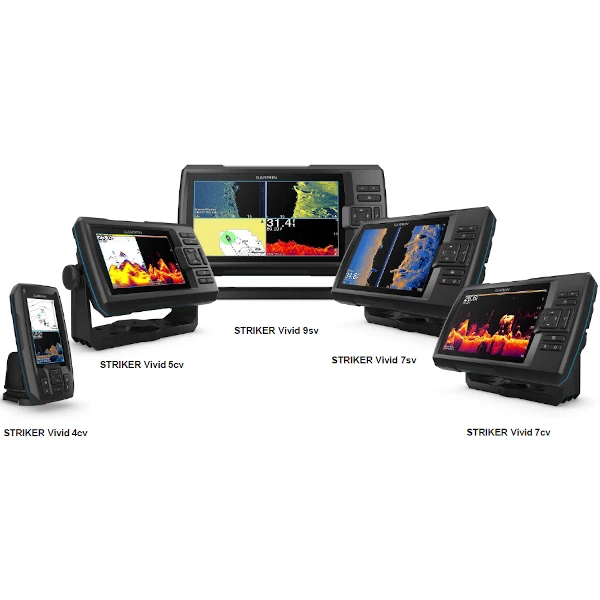 - STRIKER 4cv, 5cv and 7cv fishfinders available with a GT20 transducer for built-in Garmin CHIRP traditional sonar and CHIRP ClearVü scanning sonar