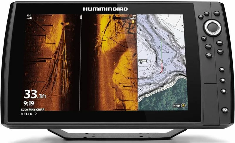 - Featuring a commanding 12.1″ display, MEGA Side Imaging+, MEGA Down Imaging+ and Dual Spectrum CHIRP Sonar. Includes GPS mapping, built-in Bluetooth, Ethernet networking capabilities and ability to create your own maps in real-time with AutoChart Live’s depth, vegetation and bottom hardness mapping.