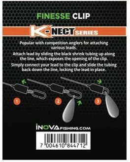 - Being low in mass, this is popular with competition anglers for attaching various leads with ease. You can attach a lead by sliding the black shrink tubing up along the line, which then exposes the opening. Simply connect your lead to this and slide the tubing back down the line, locking the lead in place.