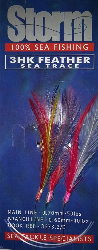 - Strings of 3 hook traditonal Mackerel Feather Lures tied on 3/0 hooks with 0.70mm (50lb) mainline and 0.60mm (40lb) droppers.